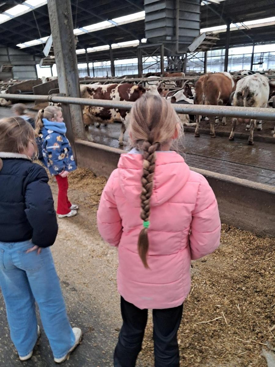 Juf Marianne en de moestuinhelpers van het 1e, 2e en 3e leerjaar haalden mest bij de boer om de moestuin winterklaar te maken.